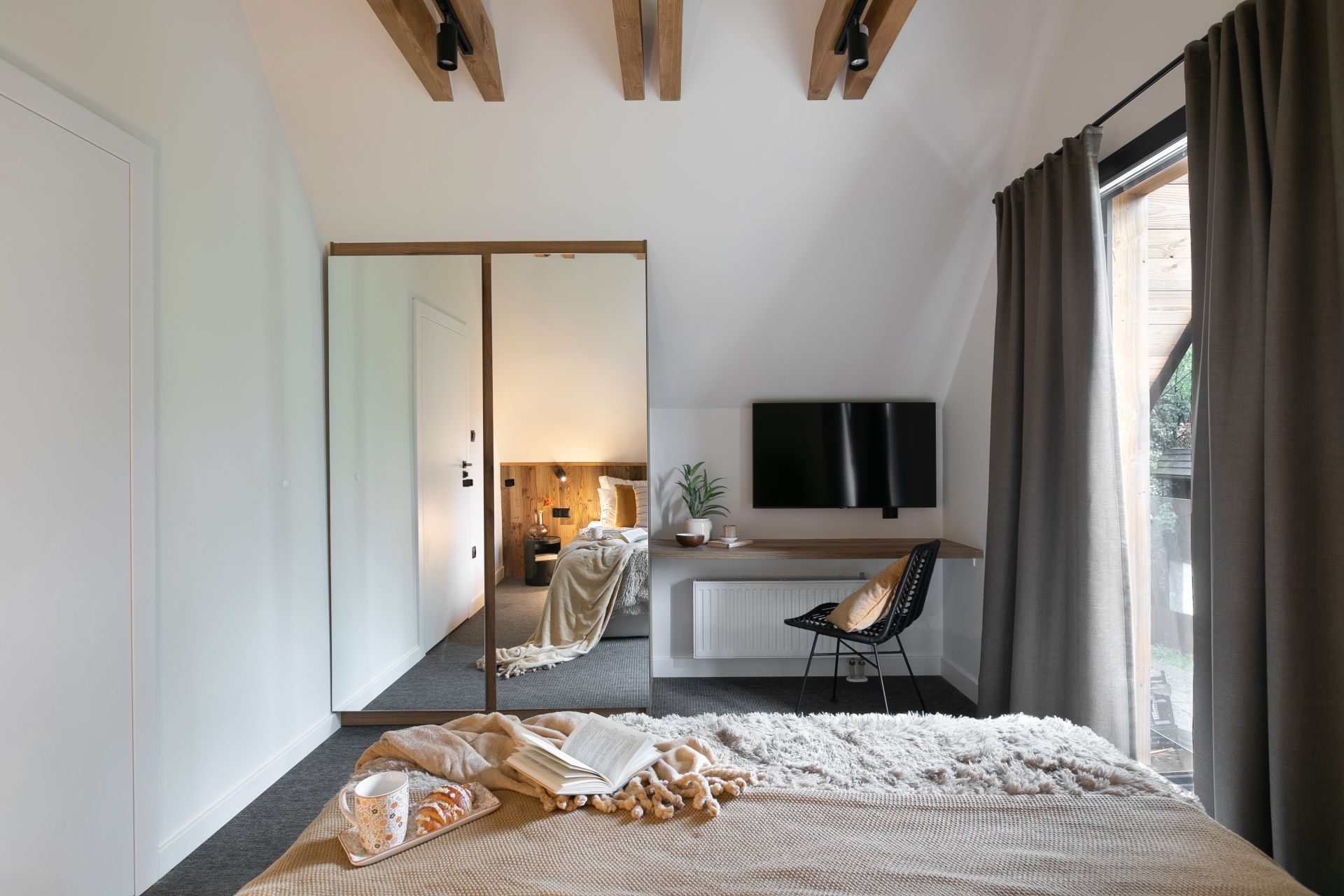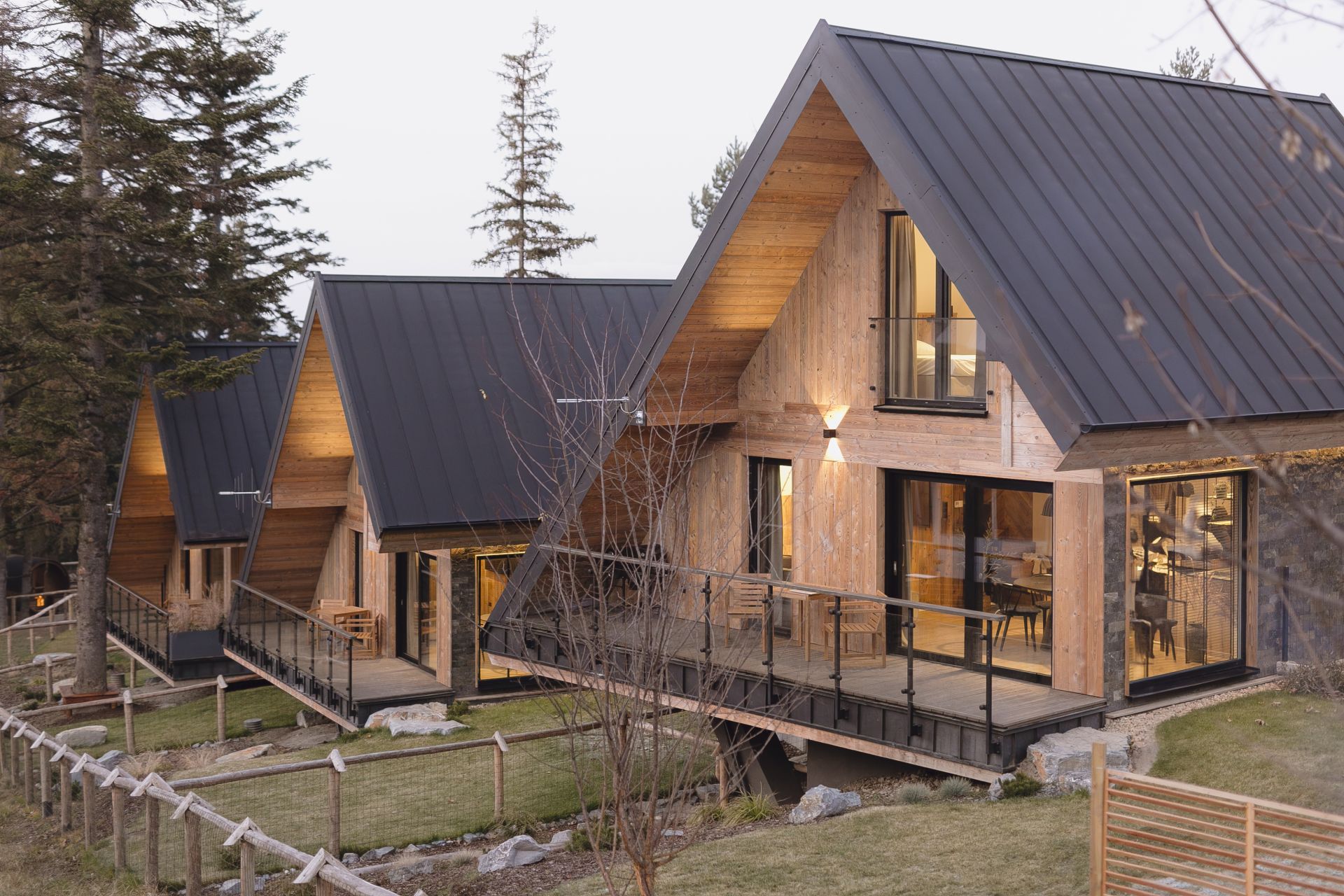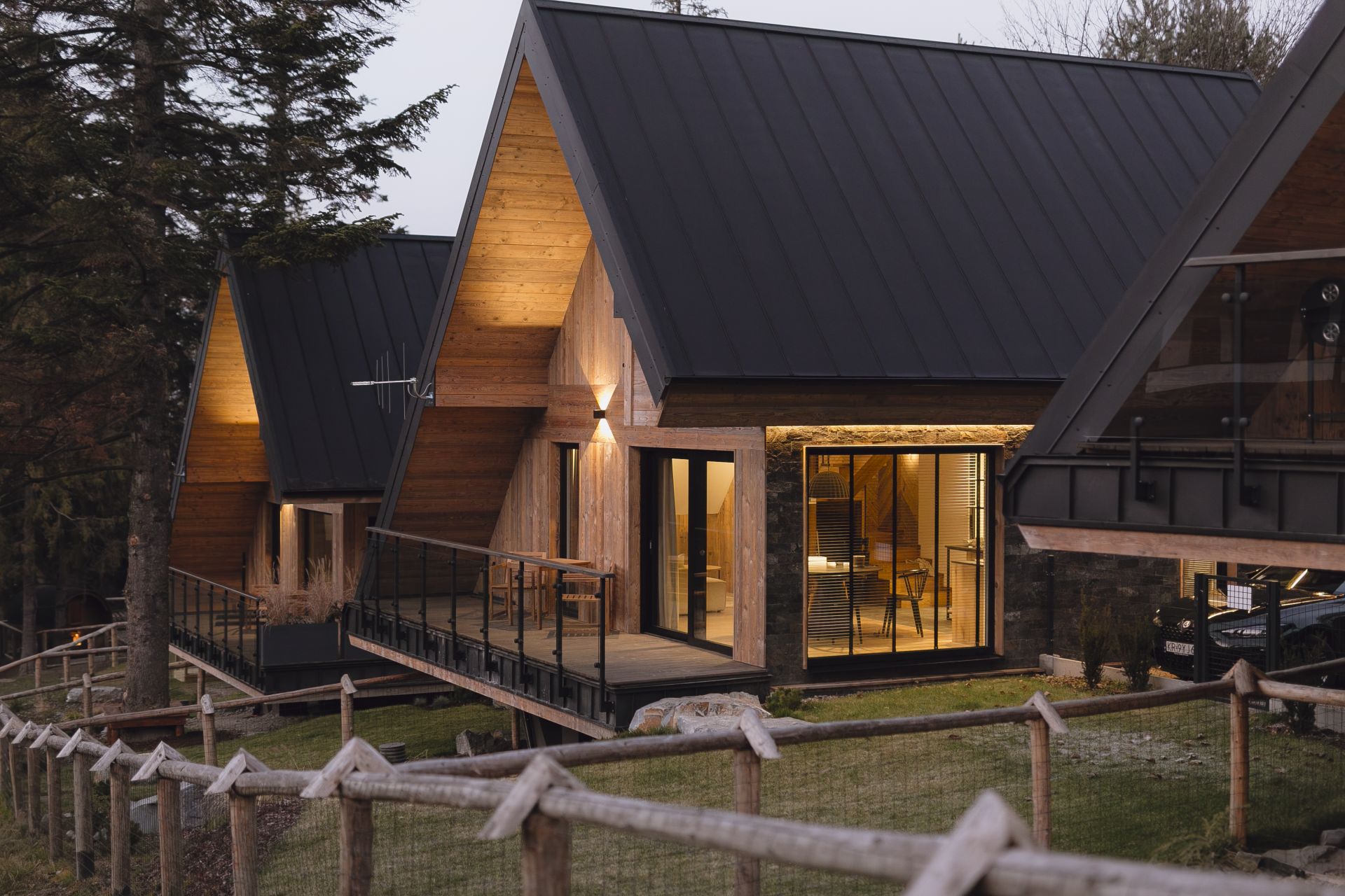 Każdy z domów THE SOPA ma po dwie sypialnie, salon i w pełni wyposażoną kuchnię. Wnętrza są zaprojektowane ze smakiem - gwarantujemy, że nie zostaniesz tu przytłoczony tandetną góralszczyzną, ale za to poczujesz ducha gór i klimat tego niezwykłego miejsca. Lite drewno, skała łupkowa i duże przeszklenia - to właściwie jedyne materiały, jakimi postanowiliśmy Cię otoczyć. Surowość, przełamana akcentami starej fotografii, dobrze koresponduje z nowoczesnością wyposażenia pomieszczeń. Tutaj nie zabraknie Ci dosłownie niczego. Dodatkowo domek posiada ogrodzony ogródek, w którym bez stresu mogą się bawić dzieci czy biegać pies.